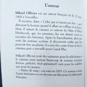 I will be reading aloud Frères de sang by French author Mikaël Ollivier